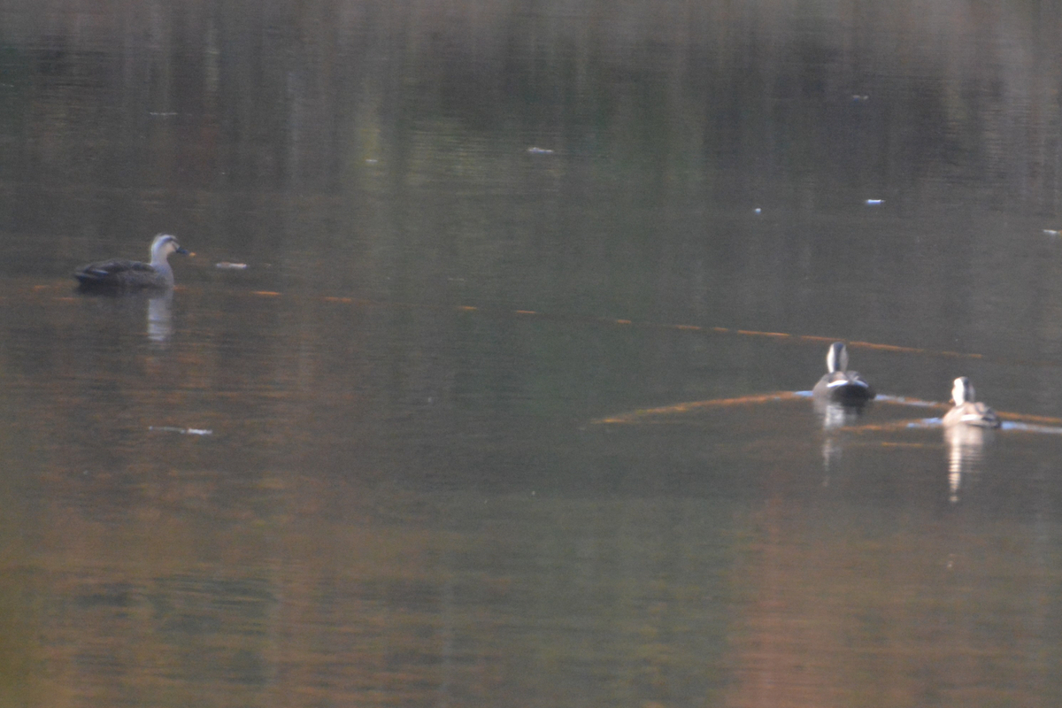 奥にはカルガモたち